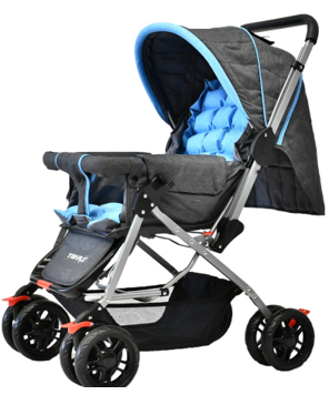 *frame material:steel *frame color:silver *linen fabric *one hand folding and reversing *black plastic parts *two points safety belt *with three positions reclining seat *foot rest adjustable *with large shopping basket *front wheels:4*7inch revolving *rear wheels:4*7inch with brake