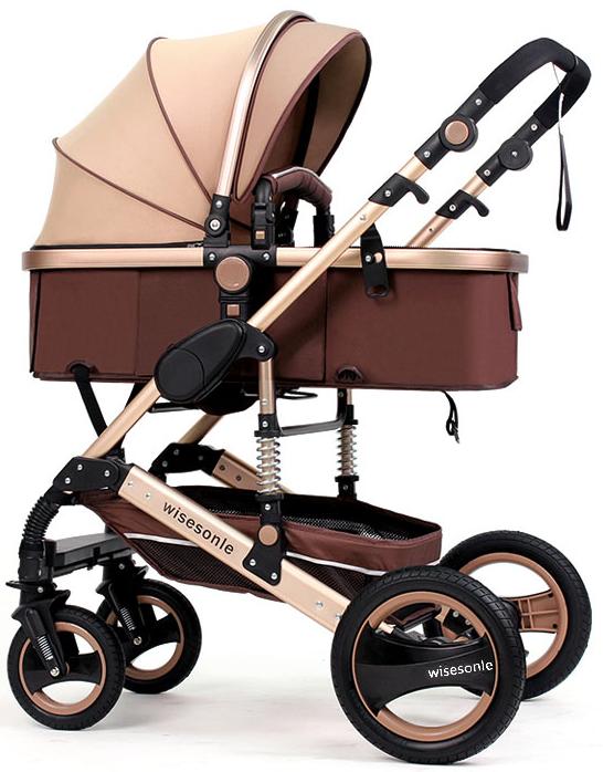 High-view aluminum tube stroller, seatable and reclinable, double-hand folding, reversible bassinet, height-adjustable push handle, 5-point safety belt, with foot cover, 28-inch + 212-inch maintenance-free tires, front wheels lockable, rear wheels one-step dual brakes