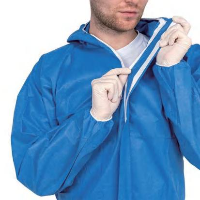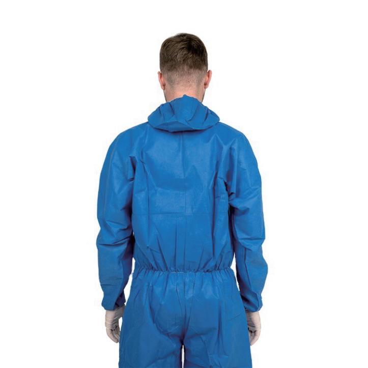 Excellent barrier to dry particles, liquid splash and spray, elastic cuff designed to improve comfort and freedom of movement.