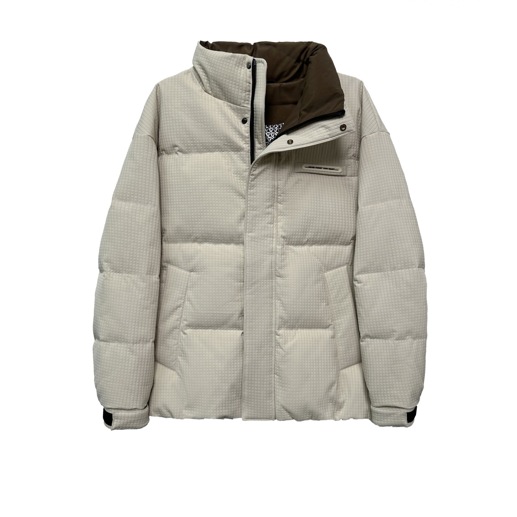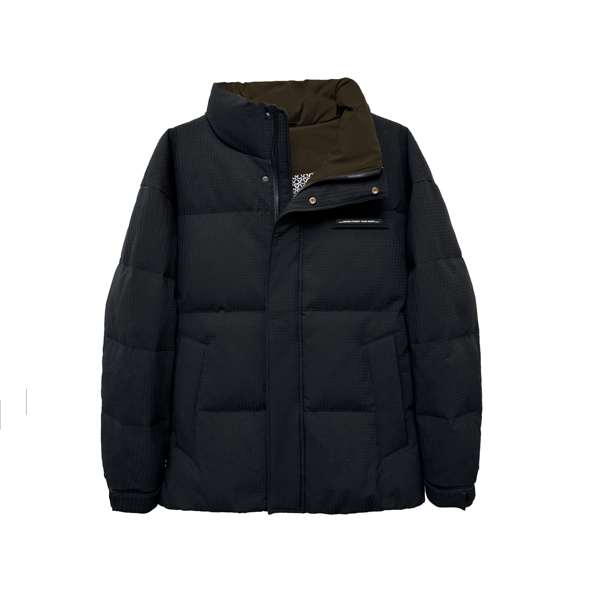 Select high-quality 50 white duck down: more warm, with high loft, and a larger volume insulation layer is fixed. This down jacket uses the new Magic Cube fabric. The core strength is exquisite and fashionable. It won't fade due to warmth. On the fabric: new Magic Cube fabric is used, achieving waterproof, oil-proof, and stain-proof properties. The high-density woven grid shape makes the fabric more fashionable and has a better texture. In terms of workmanship: imported machines are used for sewing. Each sewing position has four-thread binding, ensuring quality. Anti-down thread is used for sewing, eliminating the risk of down leakage. In terms of design: classic small stand collar design. It keeps the wind out while making the face look smaller, adding a sense of masculinity. The elastic design at the hem makes it more enveloping while locking in warmth and preventing cold wind. The collision and blending of colors naturally highlight a fair complexion. The matching label design makes the clothes more fashionable, more upscale and dreamy.