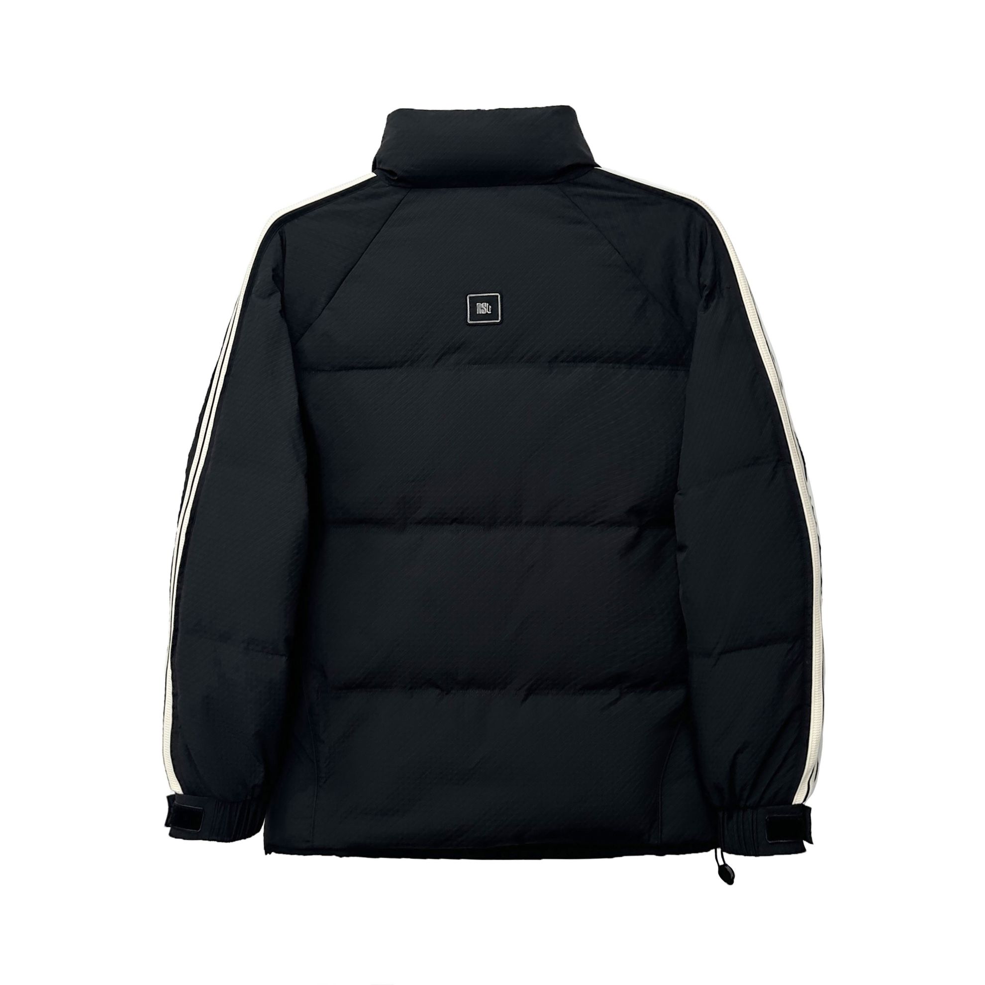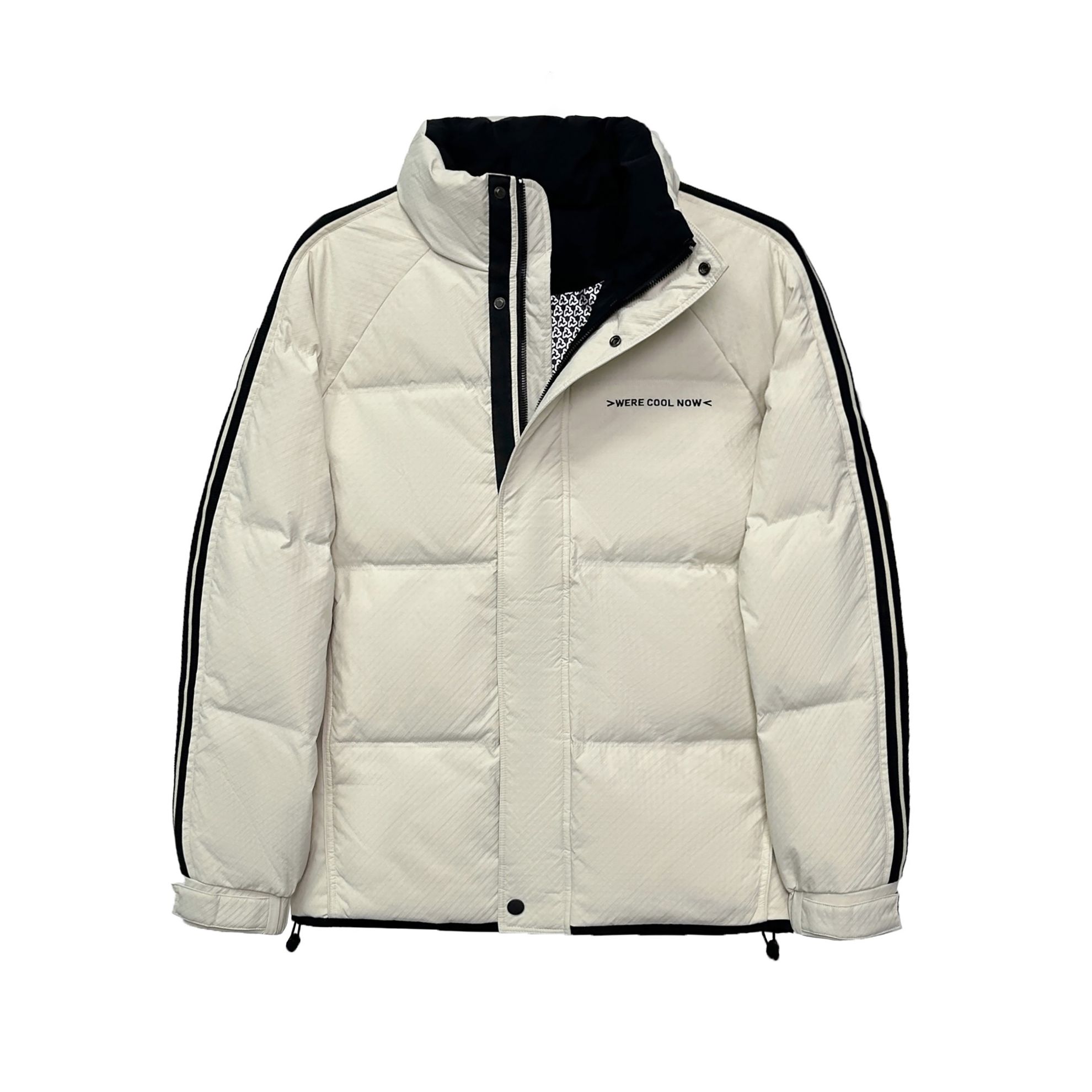 Select high-quality 50 white duck down: more warm, with high loft, and a larger volume insulation layer is fixed. This down jacket uses sporty tie straps, simple small logos, a lower hem adjustment system and metal clasps, making the down jacket more decorative, with a sense of detail and luxury. In terms of fabric: it uses four-line four-thread knit fabric combined with diagonal ribbed textured fabric, which has a 3D texture to make the fabric more textured and layered. This fabric effectively prevents wind and reduces down fluff. In terms of workmanship: it is sewn using imported machines, with four-line hemming at each seam position, ensuring quality. It is sewn with anti-fluff thread, without the risk of fluffing. In terms of design: a classic small stand-up collar, which not only protects against wind but also makes the face appear smaller, while adding a sense of masculinity. The lower hem has a free-shrinking elastic design, which can lock in warmth and prevent cold wind. The collision and blending of colors naturally highlight a fair complexion. Using sporty tie straps and simple small logos, the down jacket has a sporty style while also having a fashionable touch. In terms of fit: the cut is clean and sharp, highlighting the stability and efficiency of life.