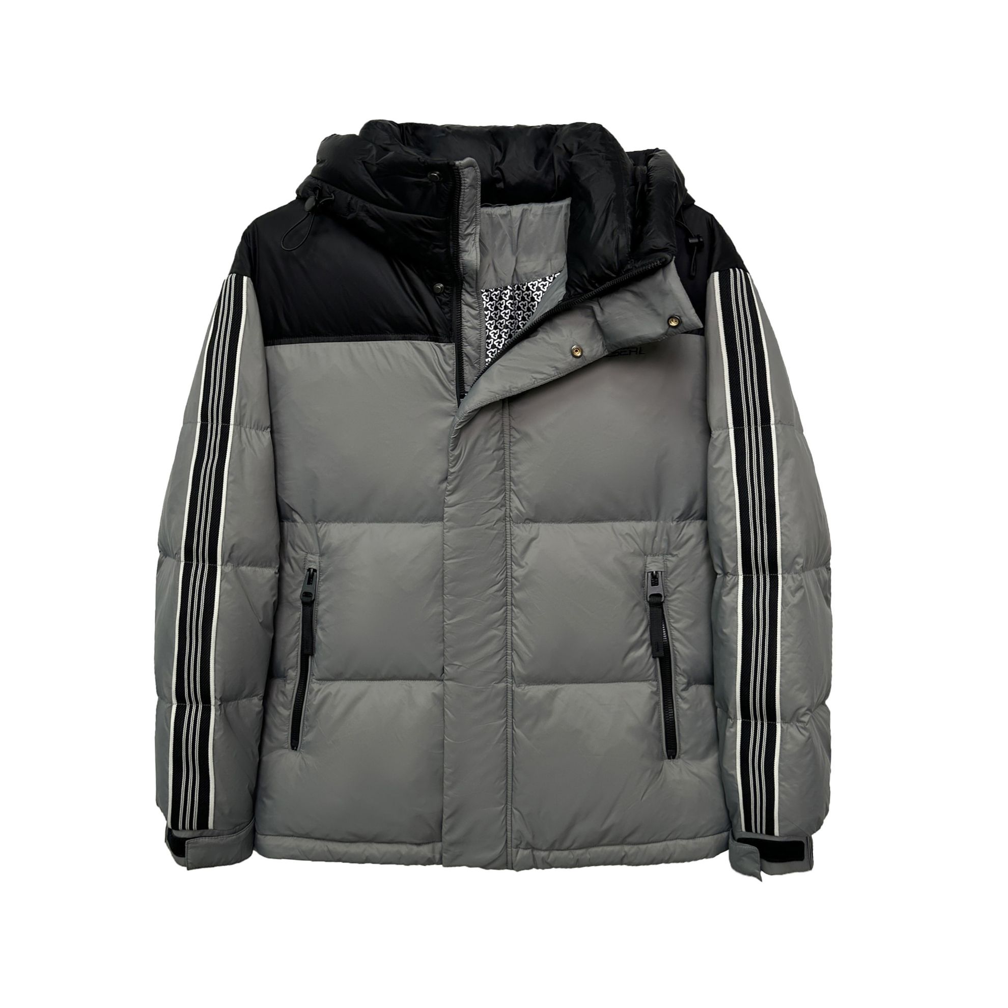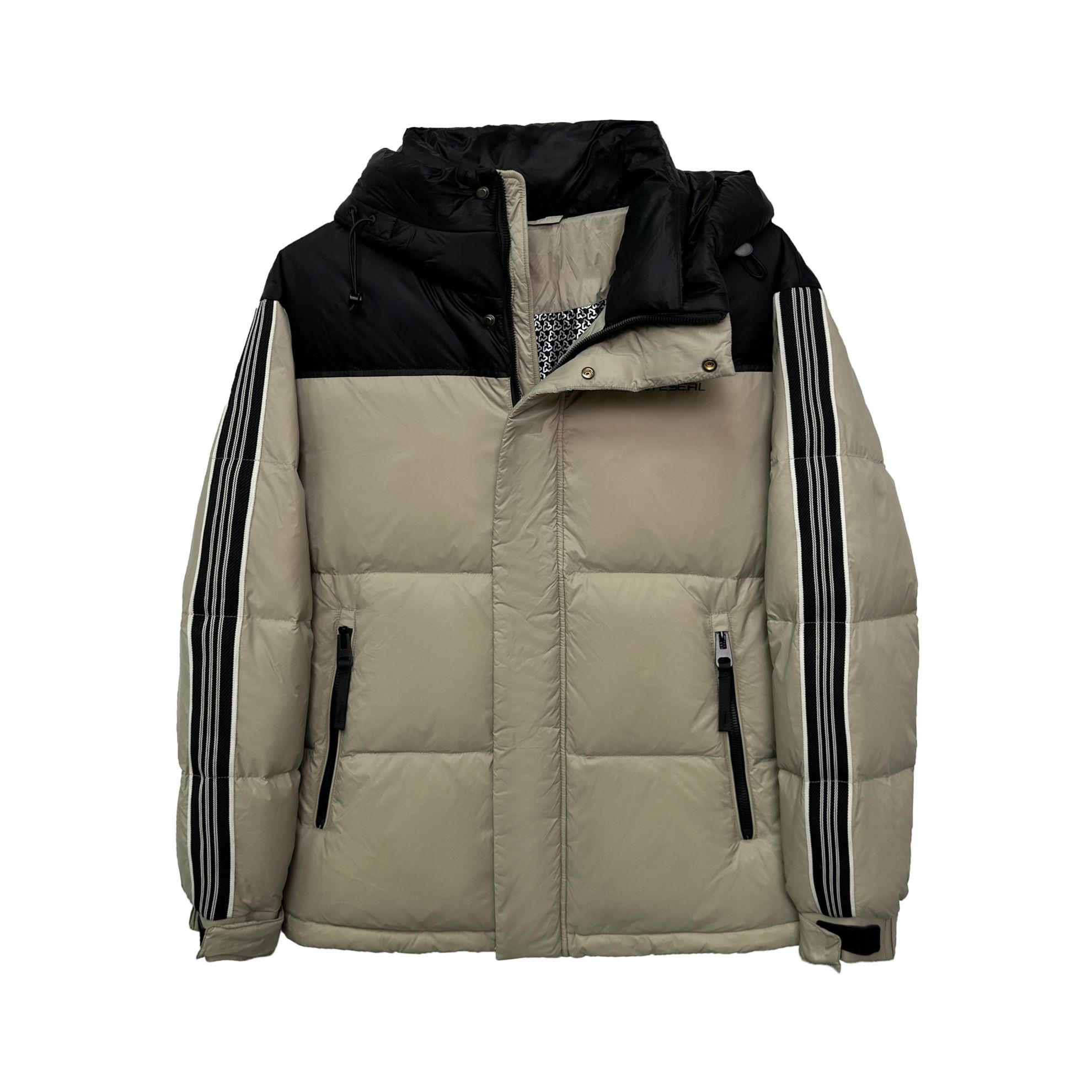 Select high-quality 50 white duck down: more warm, with high loft, and a larger volume insulation layer is fixed. This down jacket uses sporty tie straps, simple prints, a waist adjustment system and metal clasps, making the down jacket more decorative, with a sense of detail and luxury. In terms of fabric: the fabric is soft and smooth like that of a baby, and it achieves three protections: waterproof, stain-resistant, and oil-resistant. In terms of workmanship: it is sewn using imported machines, and each seam has four threads for hemming, ensuring the quality. It is sewn with anti-down thread, without the risk of down running. In terms of design: the stand-up collar and hood design prevent wind and make the face look smaller while adding a sense of masculinity. The elastic design at the bottom of the hem allows for free contraction, locking in warmth and preventing cold wind. The pocket zipper design protects important items. The color collision and blending naturally highlight a fair complexion. Using sporty tie straps and simple prints makes the down jacket have a sporty style while also having a fashionable touch.
