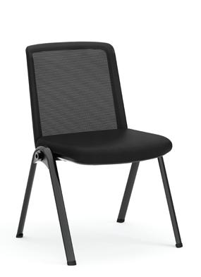 Stacking Guest Chair, black fabric and frame, could stack up, space-saving, suitable for multi-functional spaces.